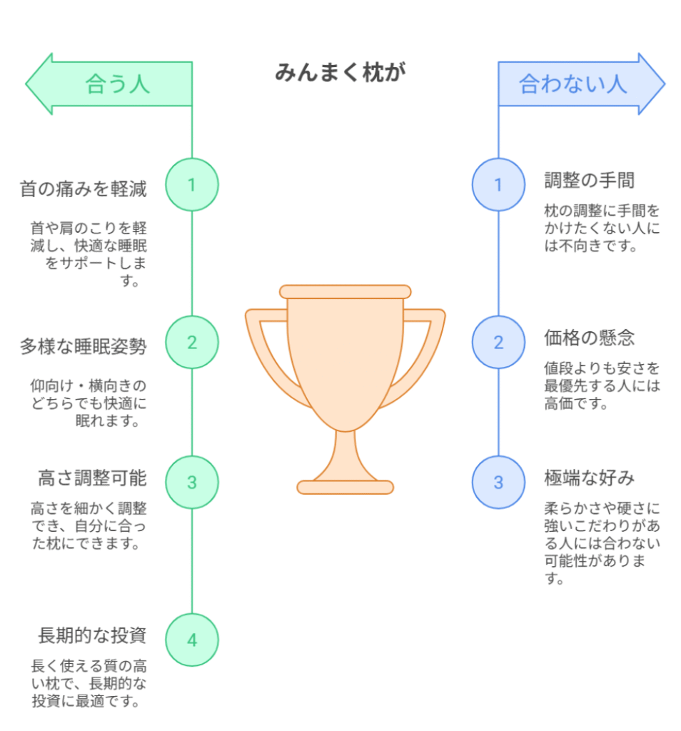 一方で「すぐ使えるシンプルな枕がいい」「安い枕で十分」と考える人にはやや不向きかもしれません。